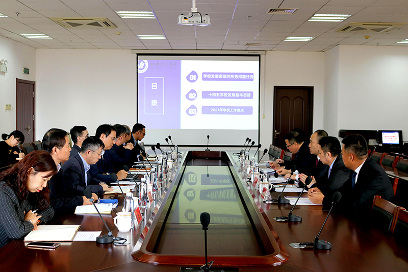 第二次會議上,曹世民董事宣讀了董事會關(guān)于學(xué)校領(lǐng)導(dǎo)任命的決議。于光輝校長代表煙臺理工學(xué)院向董事會作工作報(bào)告。報(bào)告共分三個(gè)部分:一、學(xué)校發(fā)展面臨的形勢;二、“十四五”時(shí)期學(xué)校發(fā)展基本思路;三、2021年煙臺理工學(xué)院工作要點(diǎn)。張吉亮總裁強(qiáng)調(diào),要盡快落實(shí)“十四五”時(shí)期發(fā)展規(guī)劃工作,穩(wěn)步推進(jìn)各項(xiàng)規(guī)劃和政策的實(shí)施,凝聚共識,更好地服務(wù)于學(xué)校發(fā)展。