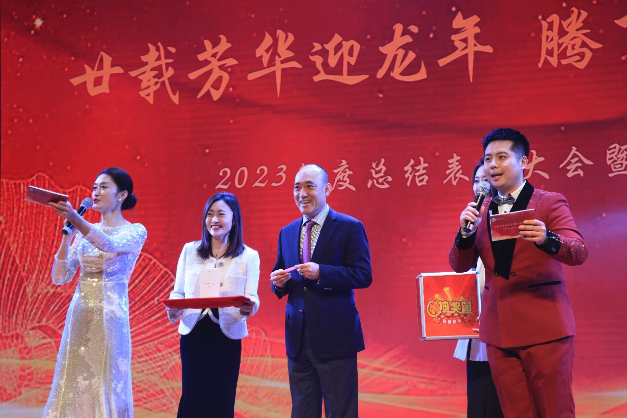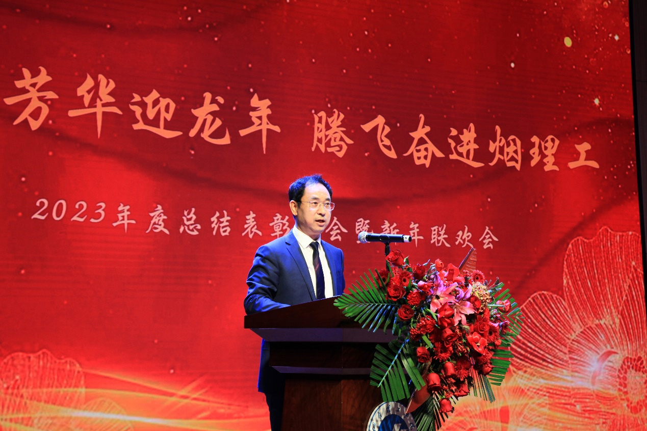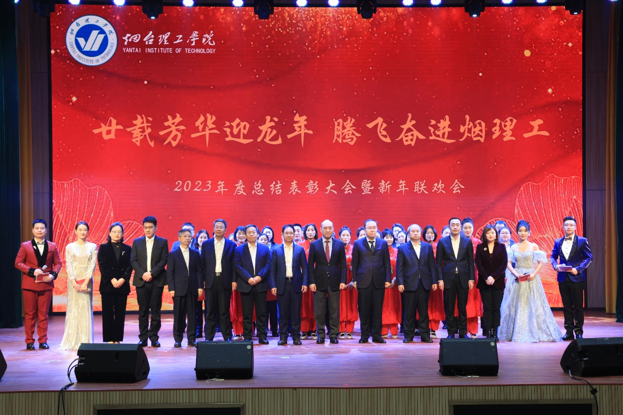 廿載芳華迎龍年,騰飛奮進煙理工。2024年1月16日下午2:00,煙臺理工學院2023年度總結表彰大會暨新年聯(lián)歡會在綜合樓一樓多功能廳隆重舉行。祥隆企業(yè)集團董事長、煙臺理工學院董事長辛軍,集團副總裁、學院董事會秘書長徐榮哲,煙臺理工學院校長于光輝,黨委書記盛國軍及全體校領導與教職員工歡聚一堂,共迎新年。