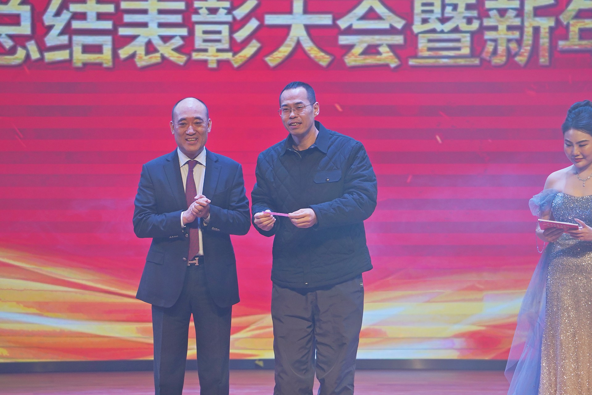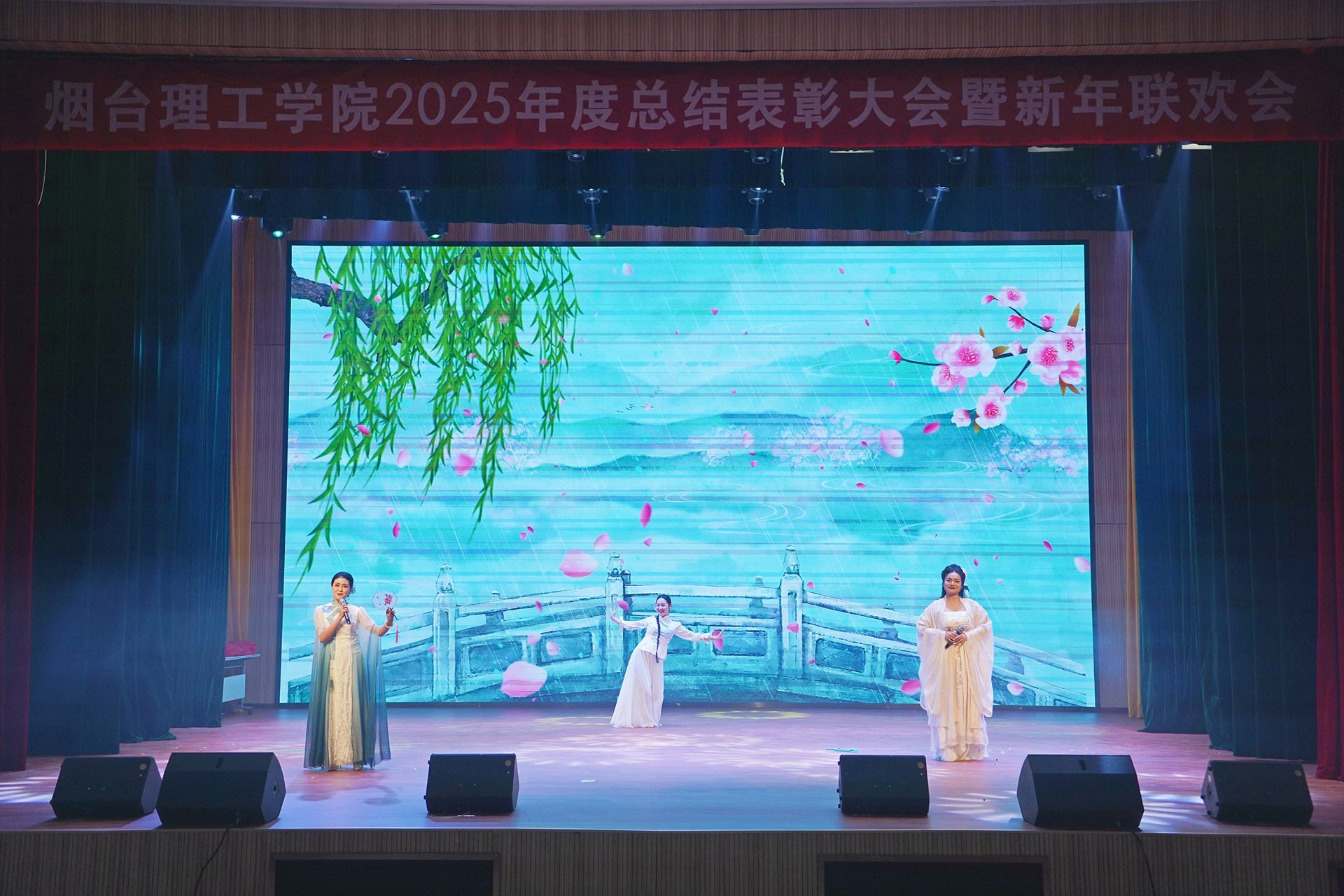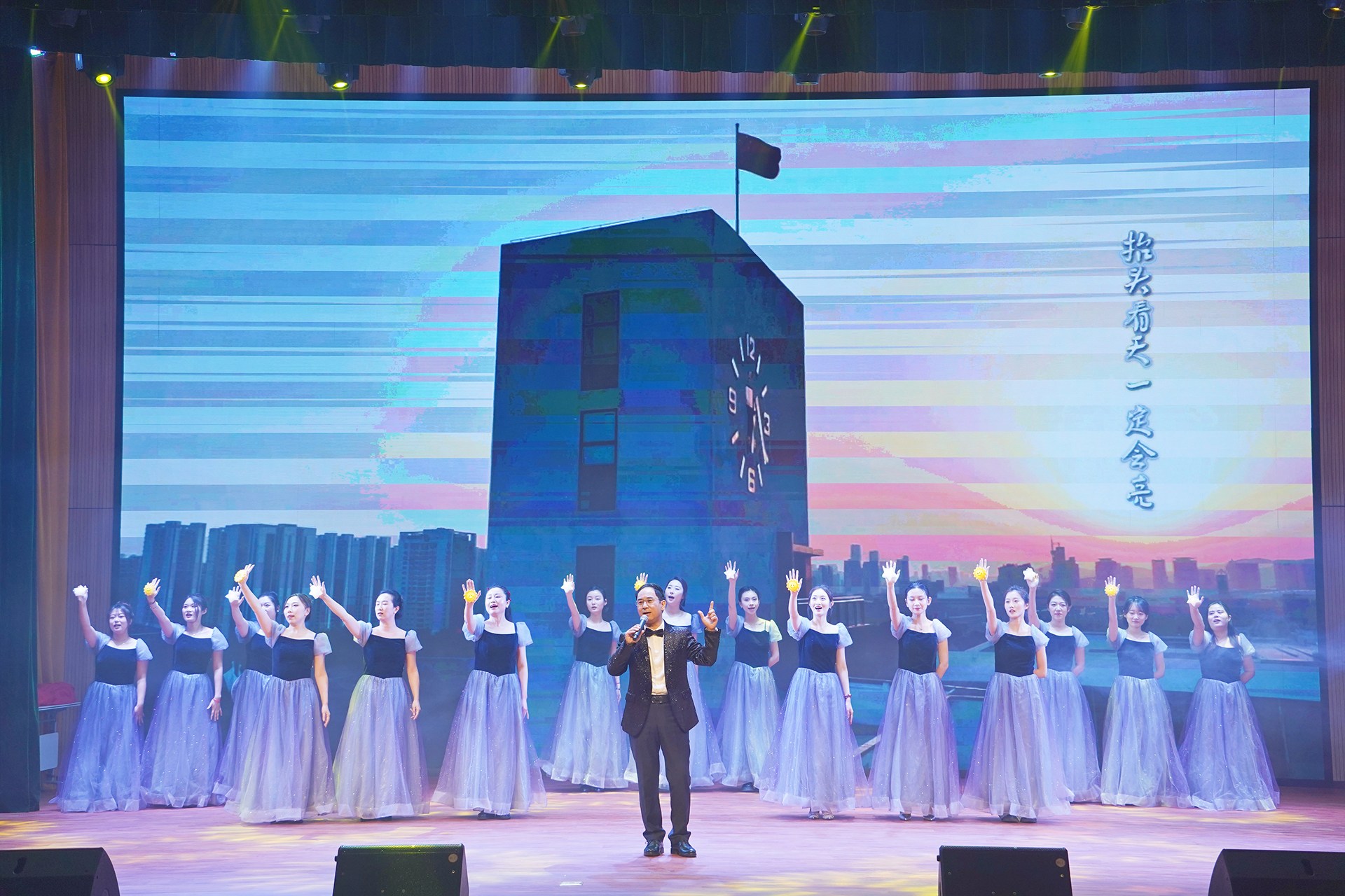 頒獎儀式后新年聯(lián)歡會正式拉開序幕。節(jié)目形式豐富、內(nèi)容精彩,展現(xiàn)了學(xué)校美育工作的豐碩成果和教職工多才多藝、積極向上的精神風貌。最后,全體人員齊聲高唱《歌唱祖國》,激昂的歌聲響徹全場,傳遞出對祖國的無限熱愛與對學(xué)校未來的美好期許。